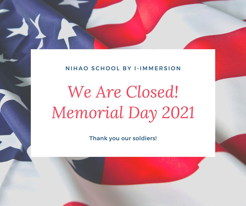 Memorial Dayi-ImmersionMay 30, 20211 min readRemember those who served. All gave some, some gave all! Memorial Day we are closed! #nihaoschool #immersivelearning